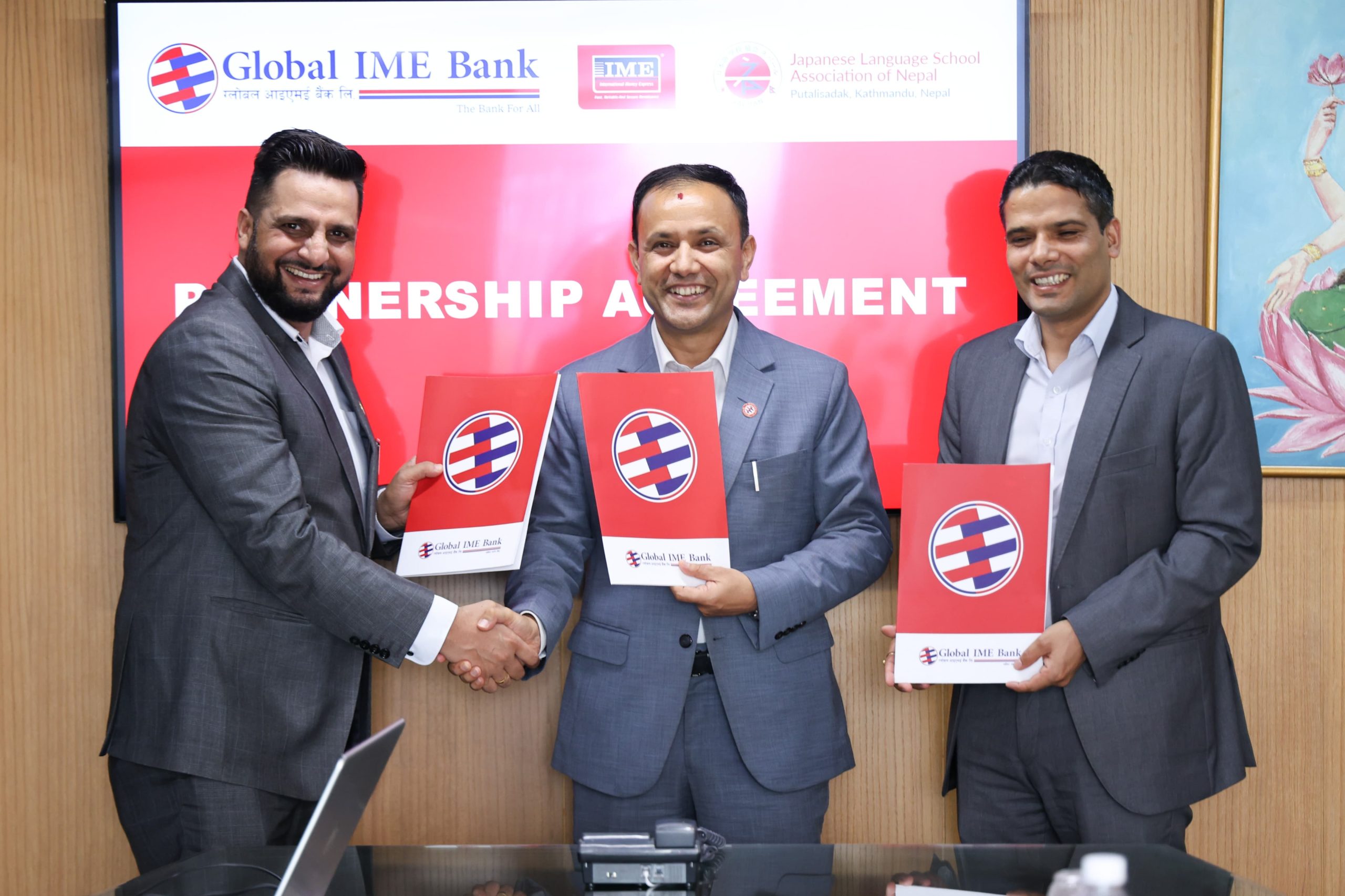 काठमाडौं । ग्लोबल आइएमई बैंक लिमिटेड, आइएमई लिमिटेड तथा जापानिज भाषा विद्यालय संघ नेपाल (जाल्सान) बीच त्रिपक्षीय समझदारी पत्रमा हस्ताक्षर भएको छ । उक्त समझदारीमा बैंकका नायव प्रमुख कार्यकारी अधिकृत सुमन पोखरेल, आइएमई लिमिटेडका प्रमुख कार्यकारी अधिकृत खिलेन्द्र पौडेल तथा जाल्सानका अध्यक्ष रमेश देवकोटाले हस्ताक्षर गर्नुभएको छ ।