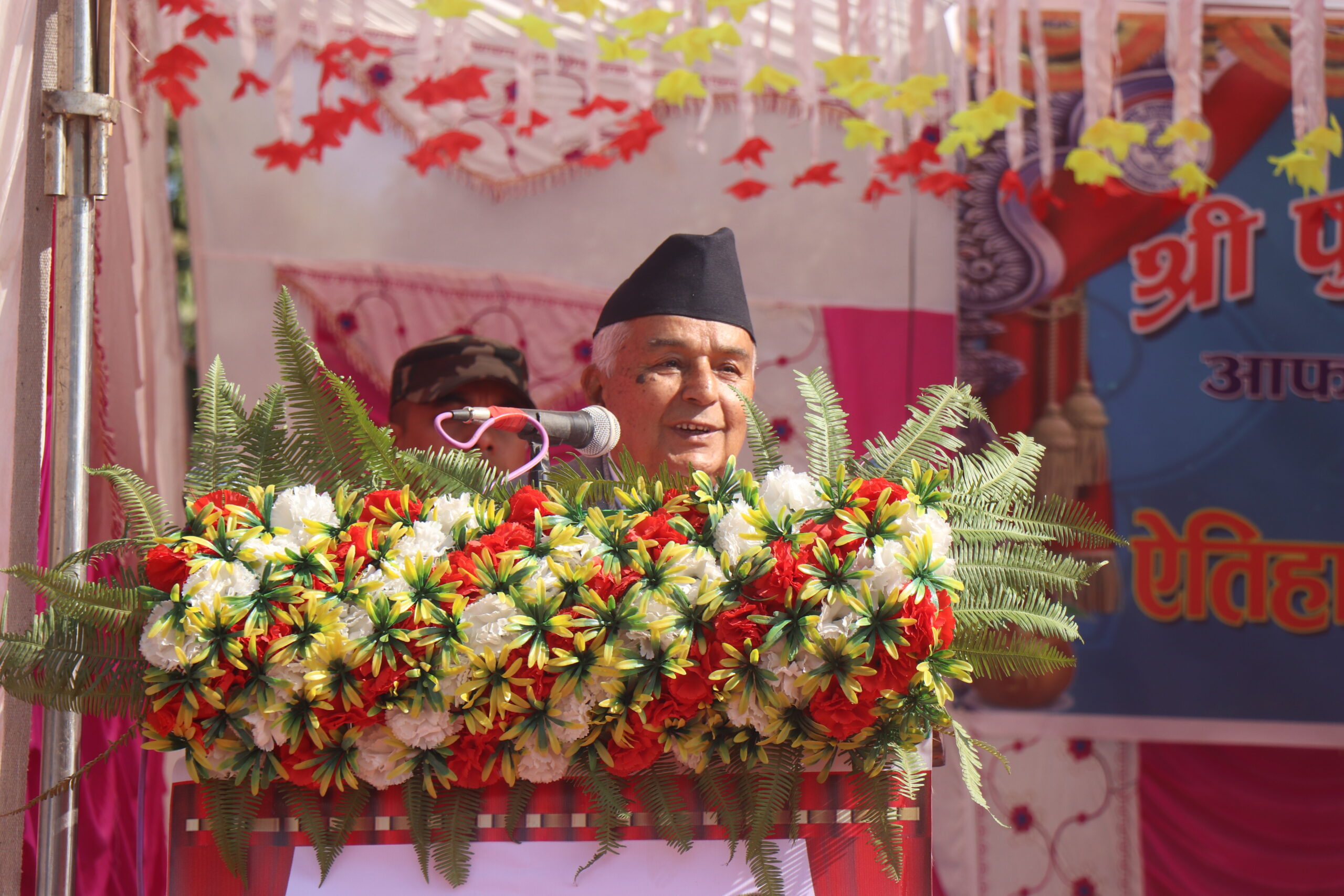 “अबका दुईचार वर्षमा यी सबै गाउँमा कालोपत्र सडक पुर्‍याउन हामी लागेका छौँ । म भन्छु, त्यो पनि पूरा गरिन्छ । तर समस्या उही हो, त्यो सुविधा उपभोग गर्ने मान्छे गाउँमा कोही रहने हुन कि हैनन् ?”, राष्ट्रपति पौडेलले भन्नुभयो, “विदेश मोहले लठ्ठिएका हामी आफ्नै नाभीको सुगन्ध खोज्दै भिरभिरै भौँतारिने हाम्रो हालत छ । आखिर किन भयो यस्तो ? यो प्रश्न म आफैँसँग गरिरहेको छु । उत्तर पनि मसँगै छ । गाउँमा सबैथोक पुग्यो तर सम्मानजनक रोजगारी र आम्दानीको अवस्था बन्न सकेन ।”