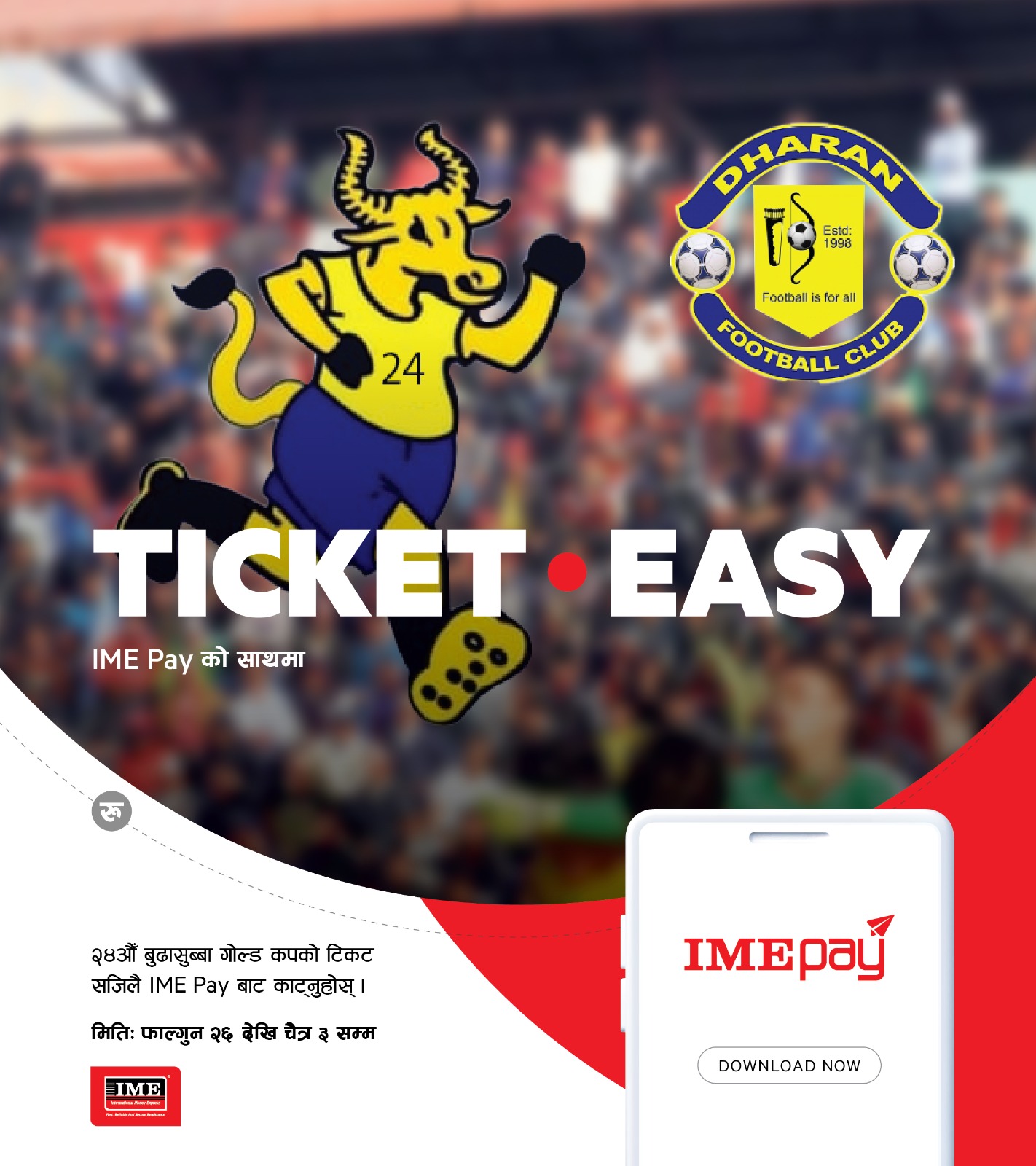 बुढासुब्बा गोल्ड कप फुटबल प्रतियोगिता आइएमई पेबाट सजिलै टिकट काटेर हेर्न मिल्ने