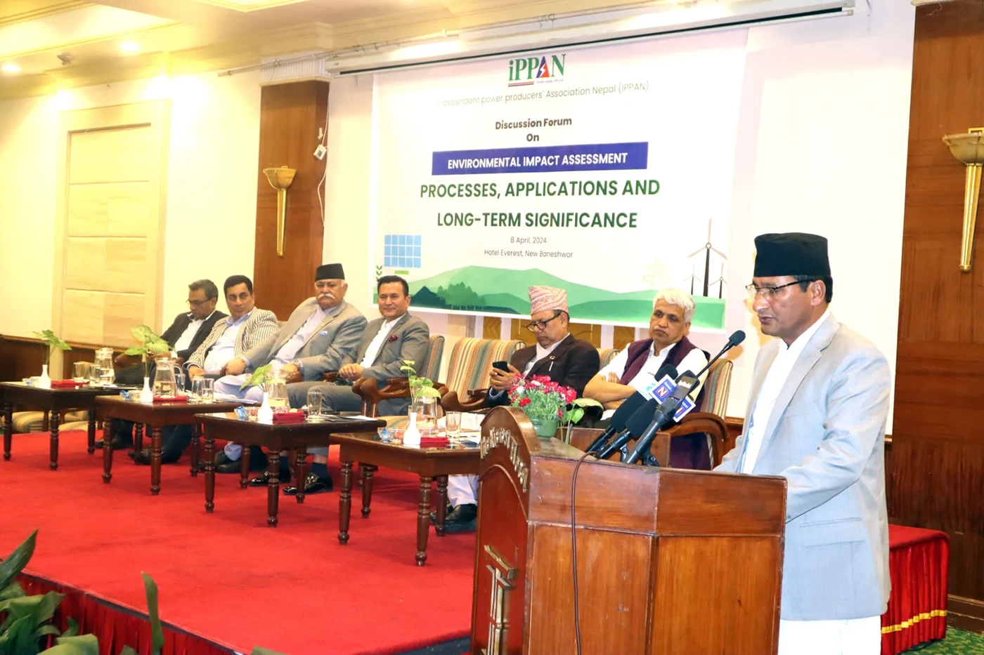 त्यस्तै ऊर्जा प्रवर्द्धक कृष्णप्रसाद भण्डारीले जलविद्युत आयोजना बनेपछि त्यो ठाउँमा वातावरण संरक्षणमा महत्वपूर्ण भूमिका खेलेको स्मरण गराउँदै जंगल मात्रै जोगाउँ, जलविद्युत बनाउनै हुँदैन भन्नु जायज नभएको बताए । अधिवक्ता होमकान्त चौलागाईले १० प्रतिशत पानी छोड्दा हुने ठाउँमा हँचुवाको भरमा ३५ प्रतिशत उल्लेख गरेको भन्दै यस्तो व्यवस्था हुनै नसक्ने बताए । कार्यक्रममा वातावरणविद सलिम देवकोटा र निराजन श्रेष्ठले इआईएको महत्व वारे प्रस्तुतीकरण दिएका थिए भने इप्पान उपमहासचिव प्रकाश दुलालले कार्यक्रम सञ्चालन गरेका थिए ।
