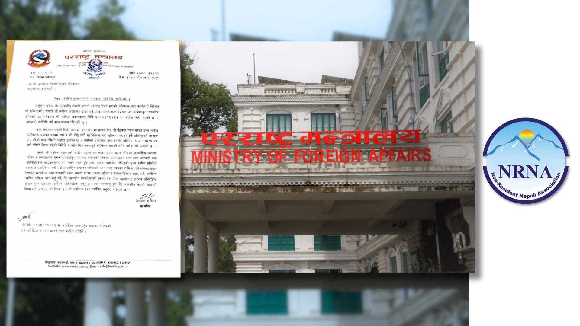 मन्त्रालयले संघको गरिमा, एकता, उद्देश्य र प्रभावकारितामा प्रभाव पार्ने, अतिरिक्त आर्थिक दायित्व बहन हुने, गैर आवासीय नेपालीहरूको एकता, पारस्परिक सहयोग र सद्भाव अभिवृद्धिमा आघात पुग्ने प्रकारका कुनैपनि गतिविधिहरू नगर्न नगराउन गैरआवासीय नेपाली सम्बन्धी नियमावली, २०६६ को नियम १६ को उपनियम (२) बमोजिम निर्देशन दिएको छ । संघको बालुवाटारस्थित सचिवालयलाई सम्बोधन गरिएको पत्रमा २०७८ माघ १ मा आयोजित अन्तर्राष्ट्रिय समन्वय परिषदको ८१ औं बैठकले गठन गरेको उच्च स्तरीय समितिलाई बोधार्थ गरिएको छ ।