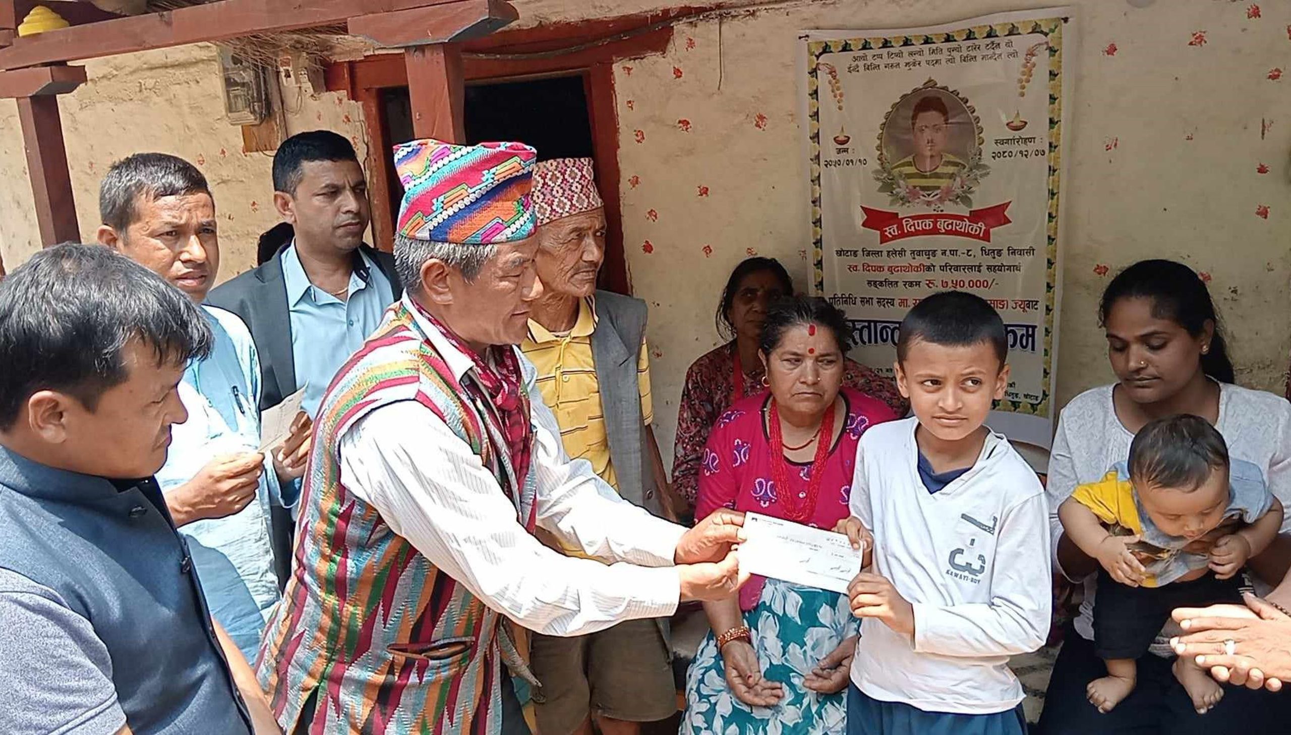 वैदेशिक रोजगारीमा ज्यान गुमाएका दीपकको परिवारलाई आर्थिक सहयोग