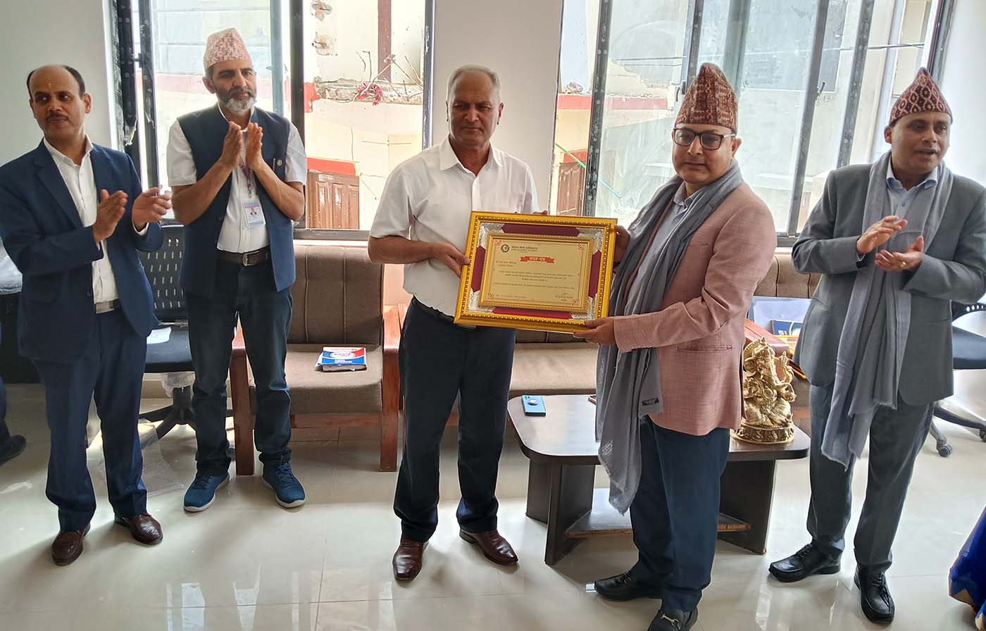 ललितपुर । नेपाल बीमा प्राधिकरणका निवर्तमान कार्यकारी निर्देशक, निर्देशक, उपनिर्देशक र सहायक निर्देशक विदा भएका छन् । नेपाल बीमा प्राधिकरणका अध्यक्ष सूर्यप्रसाद सिलवालले प्राधिकरणका निवर्तमान कार्यकारी निर्देशक राजुरमण पौडेल, निवर्तमान निर्देशक दिनेशकुमार लाल, निवर्तमान उपनिर्देशक कुसुम शर्मा र निवर्तमान सहायक निर्देशक सुनिताकुमारी कार्कीलाई दोसल्ला ओढाई सम्मान गर्नुका साथै कदरपत्र र उपहार प्रदान गर्नुभयो ।