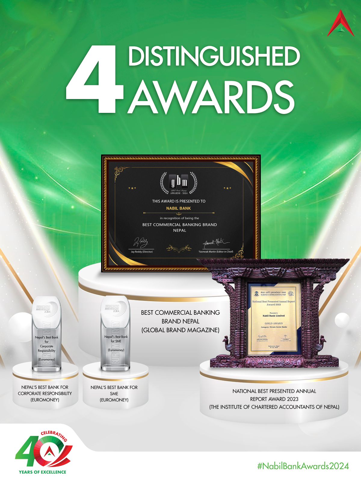 नबिल बैंकले पायो तीन अन्तर्राष्ट्रिय र एक राष्ट्रिय अवार्ड