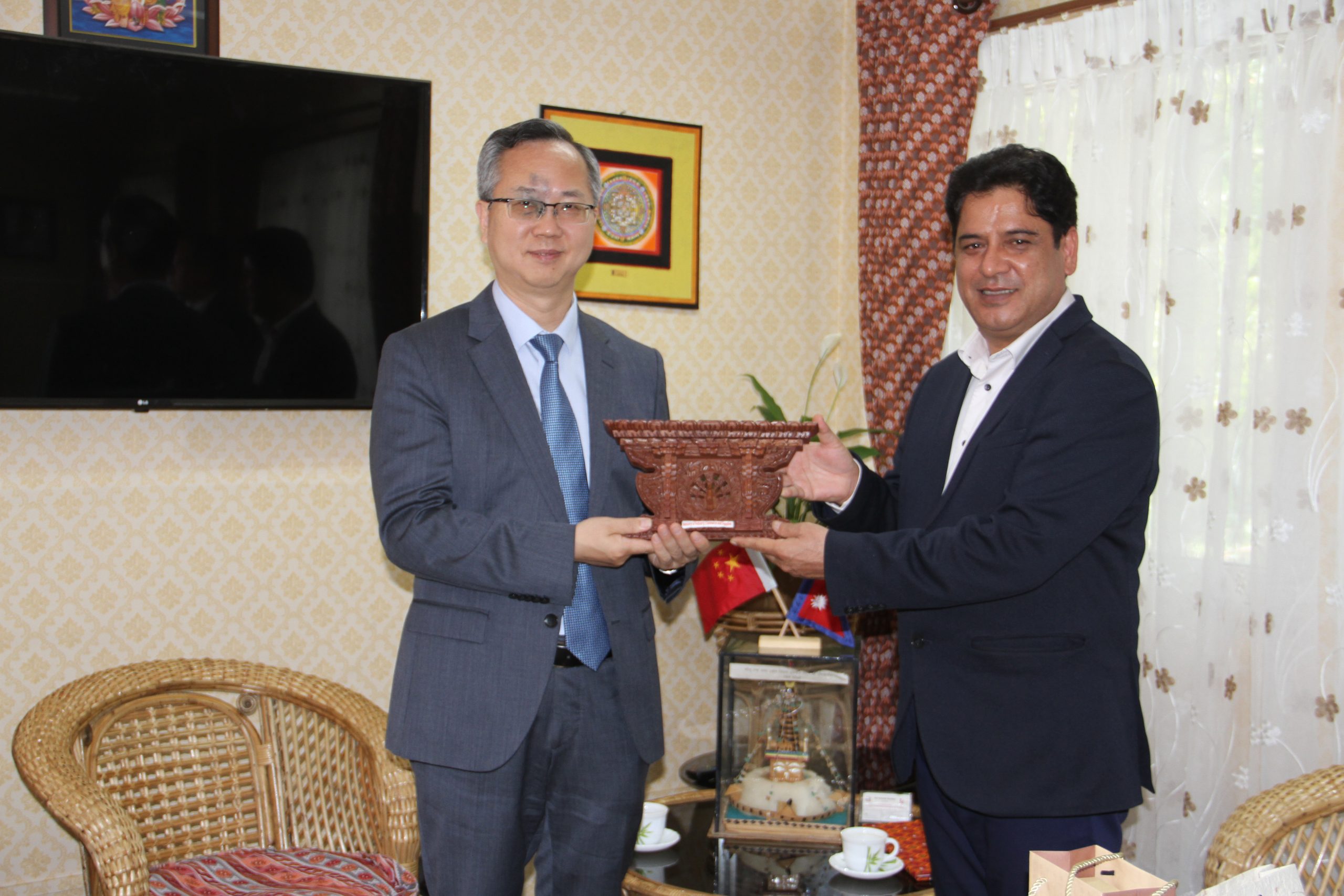 उद्योगमन्त्री भण्डारीसँग चिनियाँ राजदूत सोङको भेट