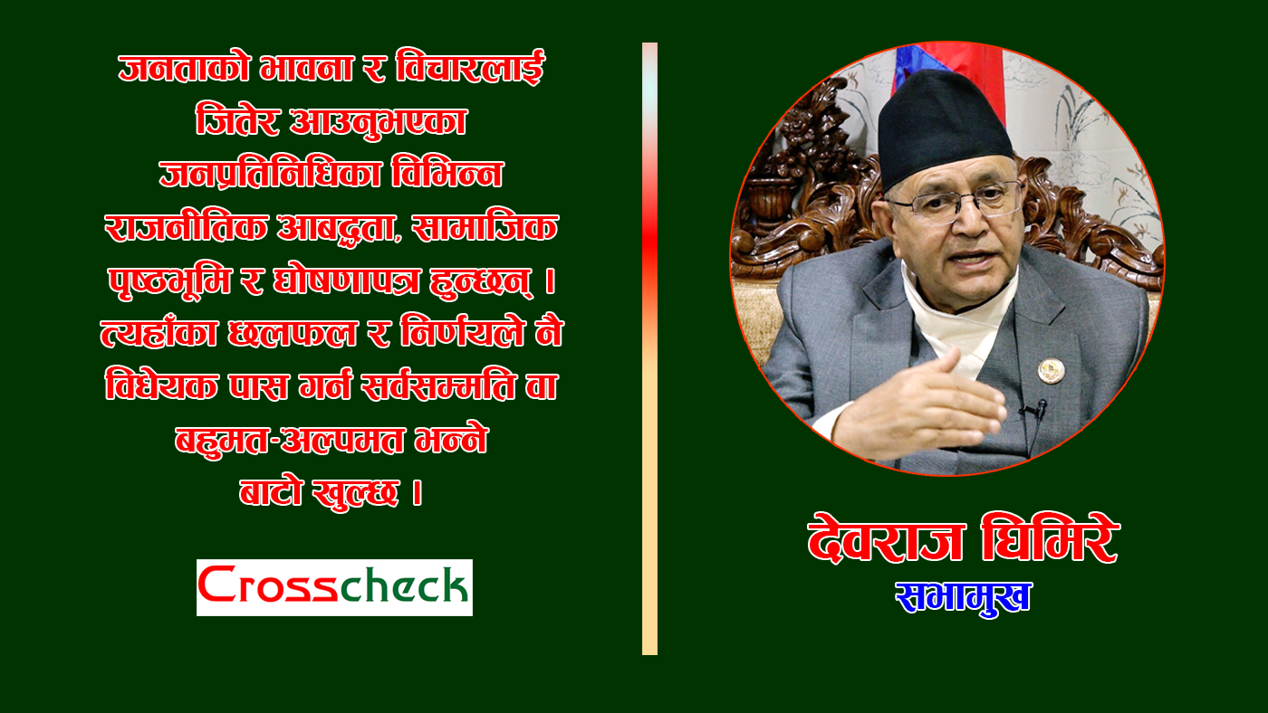 सभामुखः जनप्रतिनिधिमार्फत हाम्रा माग राज्यले सम्बोधन गर्छ, चाहनालाई प्रदेश र स्थानीय तहमार्फत कार्यान्वयनमा लान सकिन्छ, स्थानीय तहमार्फत न्याय-निसाफ निरुपण हुन्छ । प्रादेशिक अवस्थाका आधारबाट ऐन, कानुन र नीति निर्माण गरी प्रत्यक्ष सरकारको महसुस गर्छाैं भन्ने जनतामा अनुभूति भएको छ । तथापि केही ठाउँमा भइरहेका विकृति र गलत अभ्यास, न्याय निरुपण गर्ने सन्दर्भमा भएका कतिपय पक्षपात, समयमा योजना पूरा गरेर प्रतिफल पाउने कार्यमा भएका कमजोरीलाई लिएर अलि बढी नै प्रचार भइरहेको छ । यदि यस प्रणालीअन्तर्गत खासगरी संविधानका मातहतबाट गरिएका यी काम नभएको भए राज्यबाट जनताले ‘डेलिभरी’ प्राप्त गर्न सम्भव थिएन । योगदानमा आधारित सामाजिक सुरक्षाको कार्यक्रम विभिन्न ठाउँमा स्थानीय तहले नै अपनाउन पुगेका छन् । उदाहरणका लागि मकवानपुरको भीमफेदी गाउँपालिकामा भारी बोकेर जीवन निर्वाह गर्नेहरू सामाजिक सुरक्षा कोषमा समेटिएको अवस्था छ । यस तरिकाबाट भविष्य सुनिश्चित गर्ने कार्यक्रम सञ्चालन भएको छ । हामीले यस खाले संरचना र व्यवस्था तल कायम गरेका हुँदैनथ्यौँ भने त्यहाँका जनता केन्द्रको नीति र कार्यक्रमबाट के प्राप्त हुन्छ भनेर पर्खेर बस्नुपथ्र्याे । अहिले ठाउँका विशेषताका आधारमा जनहितका विभिन्न कार्यक्रम अघि बढिरहे पनि कमीकमजोरी नै बढी प्रचारित छ । संविधान कार्यान्वयन गर्ने सन्दर्भमा कतिपय कानुन र कर्मचारीको अभाव छ, कर्मचारीको वृत्तिविकास र ती कोप्रति उत्तरदायी हुने भन्ने विषय स्पष्ट छैन । त्यस्तै शिक्षा सञ्चालन गर्ने, तदनुकूल पाठक्रम तयारी गर्ने र काम लगाउने विषयको अभाव छ । आधारभूत सेवा प्रवाह गर्ने कुरामा निकायहरू लागिरहेकाले परिणाम जनताका जीवनमा सकारात्मक नतिजा आएको छ जुन ठुलो उपलब्धि हो । तलका जनताले प्रत्यक्ष के पाइहेका छन्, तिनको जीवनस्तर माथि उठ्यो कि उठेन, आधारभूत शिक्षा र स्वास्थ्य सेवा पाए-पाएनन् भन्ने दृष्टिबाट हेर्दा तुलनात्मक र समग्र रूपमा भएका प्रगति उल्लेखनीय छन् । सुधार्ने धेरै ठाउँ छ, यसलाई मसिनो गरी हेर्ने, देख्ने र बुझ्ने तथा महसुस गर्ने र प्रचार गर्ने कुराको अझै अभाव छ ।