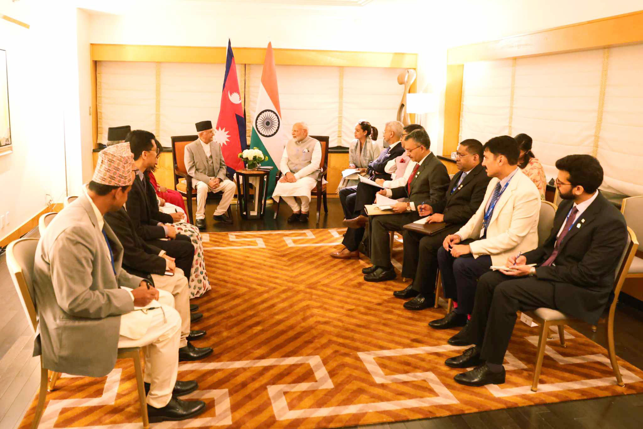अमेरिका । संयुक्त राष्ट्रसङ्घको ७९औँ महासभामा भाग लिन नेपाली प्रतिधिमण्डलको नेतृत्व गर्दै संयुक्त राज्य अमेरिकाको न्युयोर्कमा रहनुभएका प्रधानमन्त्री केपी शर्मा ओेली र छिमेकी भारतका प्रधानमन्त्री नरेन्द्र मोदीबीच आज द्विपक्षीय भेटवार्ता भएको छ । उहाँहरूबीच दुवै मुलुकका विदेशमन्त्री र अन्य अधिकारीसहित टोते न्युयोर्क प्यालेस होटलमा भेटवार्ता भएको हो ।