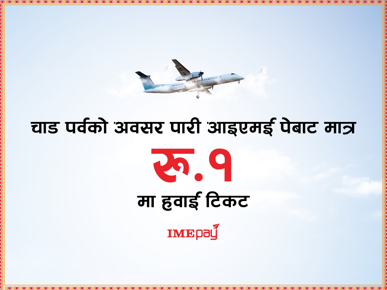 ‘आइएमई पे’ले सार्वजनिक गर्यो एक रुपैयाँमै आन्तरिक हवाई टिकट प्रदान गर्ने योजना