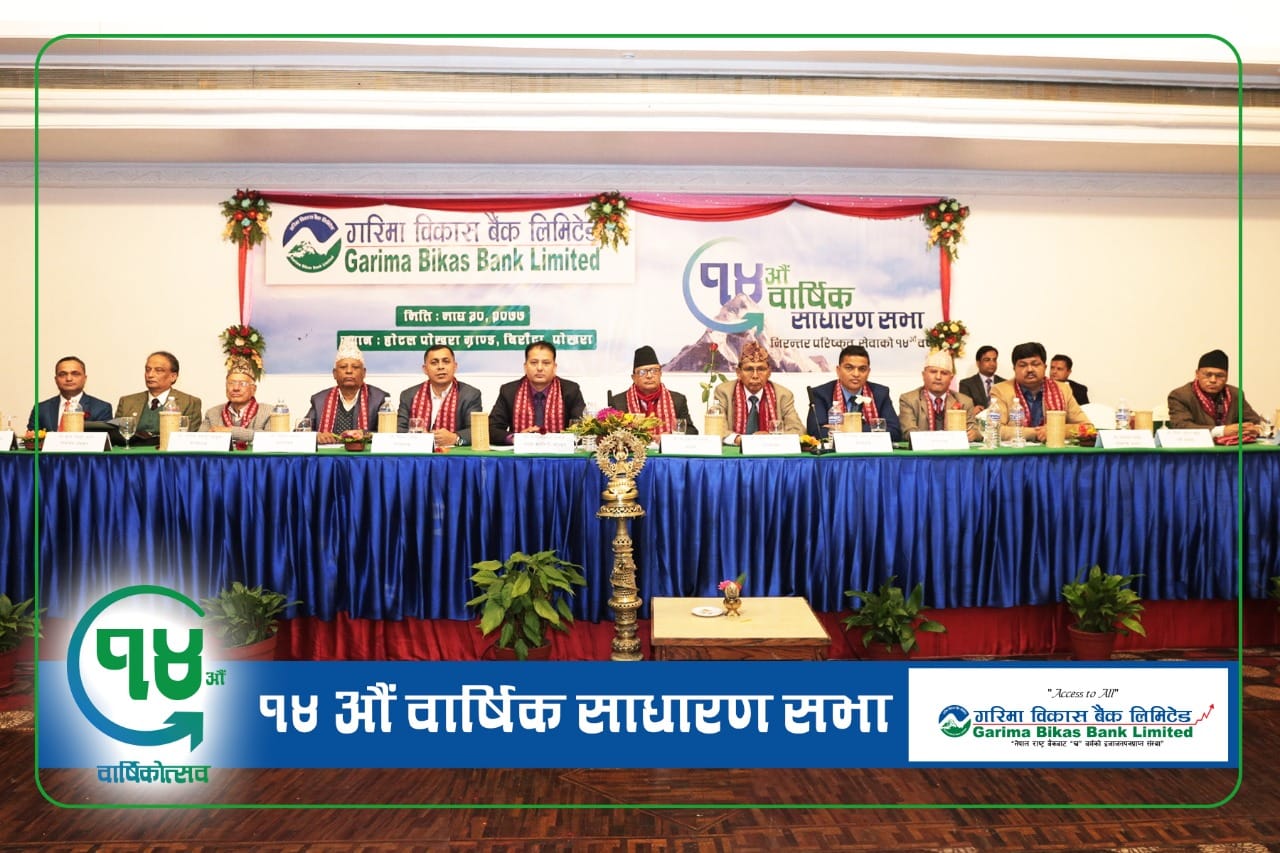 काठमाडौं । गरिमा विकास बैंकको अठारौं वार्षिक साधारणसभा सम्पन्न भएको छ । उक्त साधारण सभाले प्रस्तुत सम्पूर्ण प्रस्तावहरु सर्वसम्मत पारित गरेको छ । विकास बैंकले २०८०/८१ को वार्षिक प्रतिवेदन सहित शेयरधनीहरुलाई वितरण प्रस्ताव गरेको ५ प्रतिशत (कर सहित)को नगद लाभांस सर्वसम्मत पारित गरेको छ ।