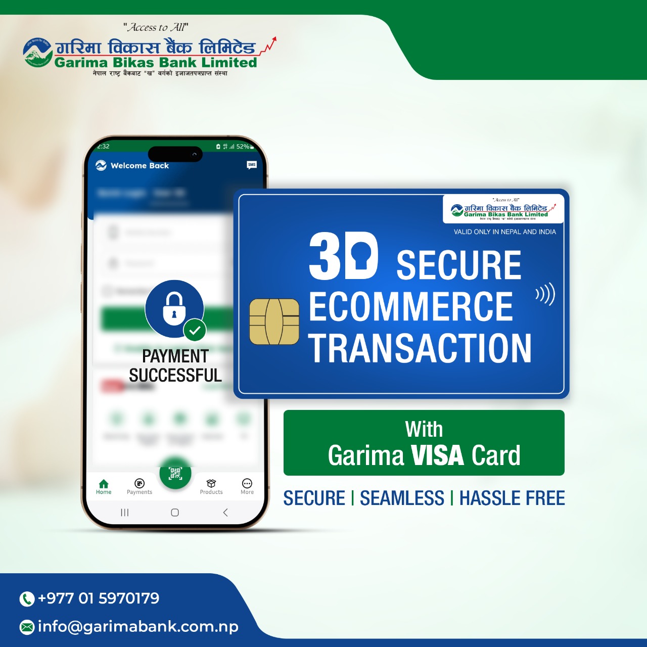 काठमाडौं । गरिमा विकास बैंक लिमिटेडले नविनतम डिजिटल बैकिङ मार्फत लामो समयदेखि आफ्ना ग्राहकवर्गहरुलाई सुरक्षित बैकिङ्ग सेवा प्रदान गर्दै आइरहेको छ । आफ्नो डिजिटल बैकिङ सेवालाई थप गुणस्तरीय एवं ग्राहकमैत्री बनाउने उद्देश्यका साथ विकास बैंकले नेपाल क्लियरिङ्ग हाउस लिमिटेड (एनसीएचएल)को सहकार्यमा विकास बैंकको डेविट तथा क्रेडिट कार्ड मार्फत सिधै रकम भुक्तानी गरी विभिन्न अनलाईन प्लेटफर्महरु मार्फत वस्तु तथा सेवा खरिद गर्न सकिने ‘थ्रीडी सेक्युर’ ई-कमर्श सेवाको शुरुवात गरेको छ ।