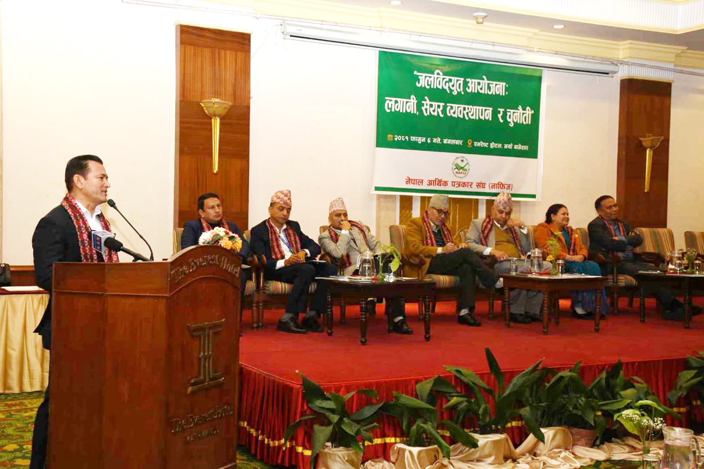 काठमाडौं । स्वतन्त्र उर्जा उत्पादकहरुको संस्था, नेपाल (इप्पान) का अध्यक्ष गणेश कार्कीले जलविद्युत उत्पादकलाई हात बाधेर राखिएको बताएका छन्। नेपाल आर्थिक पत्रकार संघले आयोजना गरेको ‘जलविद्युत आयोजना : लगानी, सेयर व्यवस्थापन र चुनौती’ विषयक अन्तरक्रिया कार्यक्रममा बोल्दै अध्यक्ष कार्कीले १५ खर्ब रुपैयाँ लगानी भएको क्षेत्र अन्योलको अवस्थामा रहेको बताएका हुन् ।