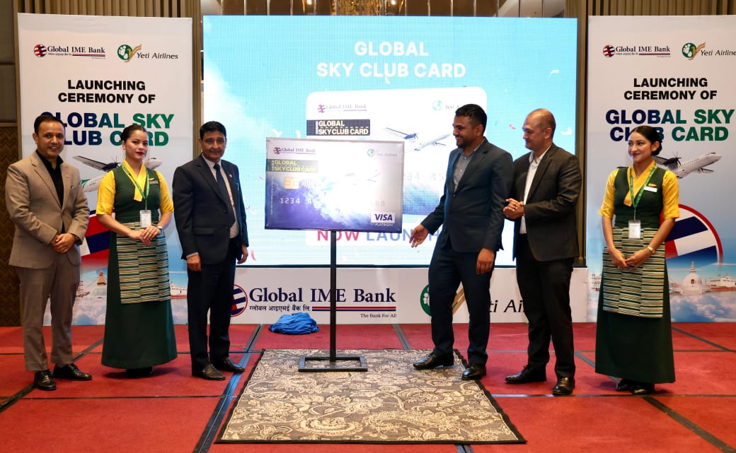 काठमाडौं । ग्लोबल आइएमई बैक लिमिटेडले यती एअरलाइन्ससँगको सहकार्यमा बैंकका ग्राहकहरुलाई हवाई यात्रा गर्दा विभिन्न सेवा सुविधा सहित ‘ग्लोबल स्काई क्लब कार्ड’ शुभारम्भ गरेको छ । काठमाडौँमा आइतबार आयोजित विशेष कार्यक्रममा ग्लोबल आइएमई बैंकका प्रमुख कार्यकारी अधिकृत सुरेन्द्रराज रेग्मी र यती एअरलाइन्सका प्रमुख कार्यकारी अधिकृत सुवास सापकोटाले संयुक्तरुपमा उक्त कार्डको अनावरण गर्नुभएको छ ।