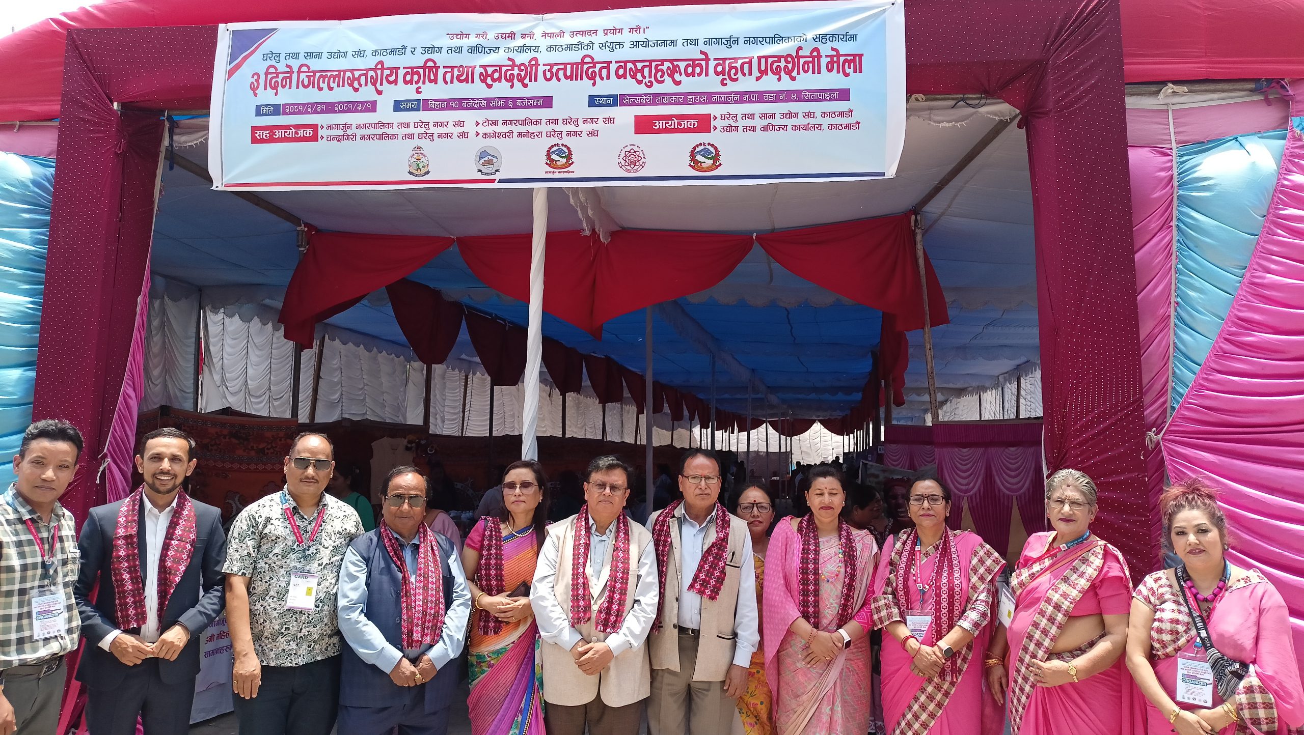घरेलु तथा साना उद्योग संघ, काठमाडौं र उद्योग तथा वाणिज्य कार्यालय, काठमाडौंको संयुक्त आयोजना तथा नागार्जुन नगरपालिकाको सहकार्य रहेको तीन दिने जिल्लास्तरीय प्रदर्शनीमा स्थानीयस्तरमा उत्पादित वस्तुहरुको प्रवद्र्धन तथा बिक्री वितरणका लागि राखिएको छ ।